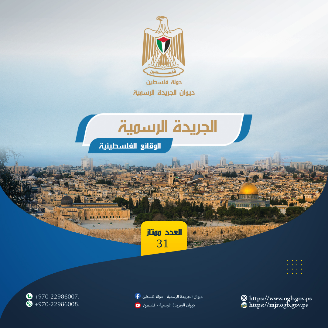 أصدر الديوان اليوم الخميس العدد ممتاز رقم (31) من الجريدة الرسمية الوقائع الفلسطينية حيث احتوى العدد على القرار بقانون رقم (23) لسنة 2025م بشأن انتخاب مجالس الهيئات المحلية.